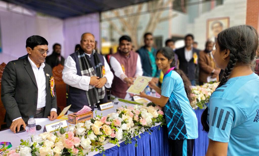 পরে অতিথিরা ক্রীড়া প্রতিযোগিতার বিজয়ীদের হাতে পুরস্কার তুলে দেন।